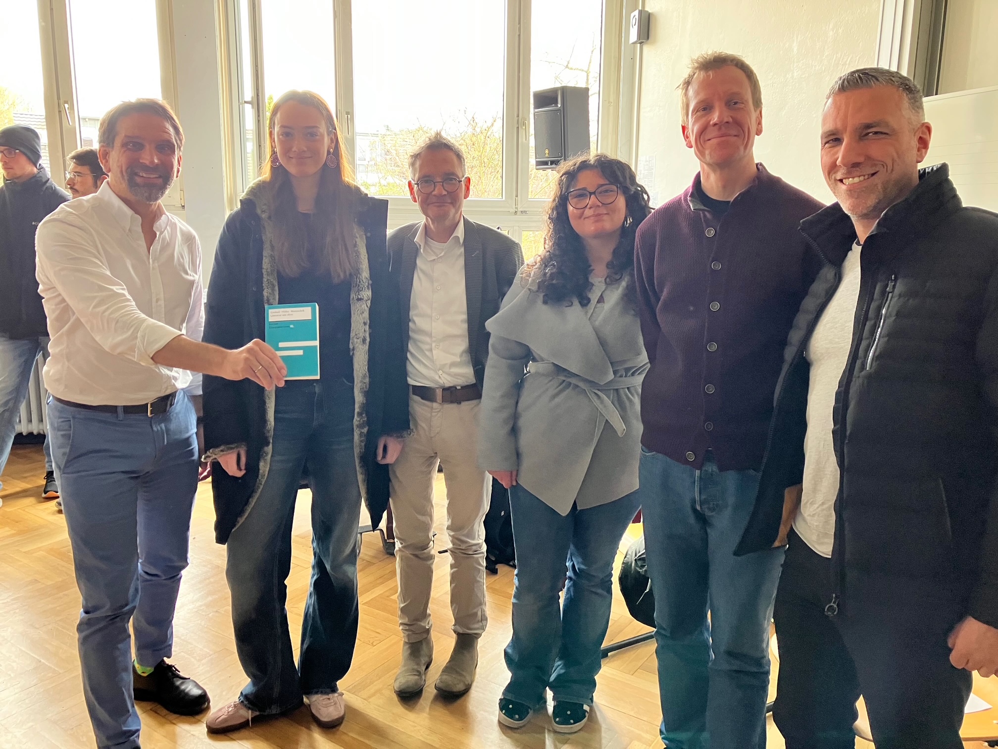 Diskutierten mit der Q2 Goethes Faust: Marc Grohall, Emilia Steinberger, Stefan Matuschek, Ayla Doganlar, Hannes Höfer und Martin Müllner (v.l.n.r.)